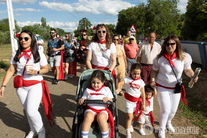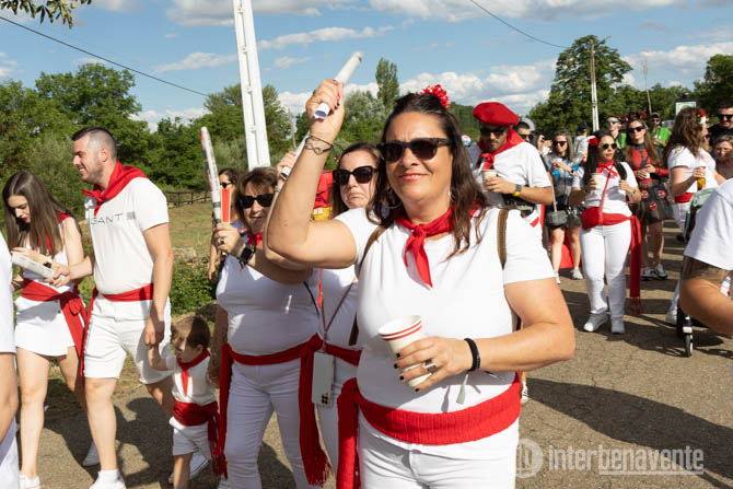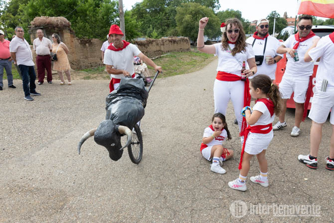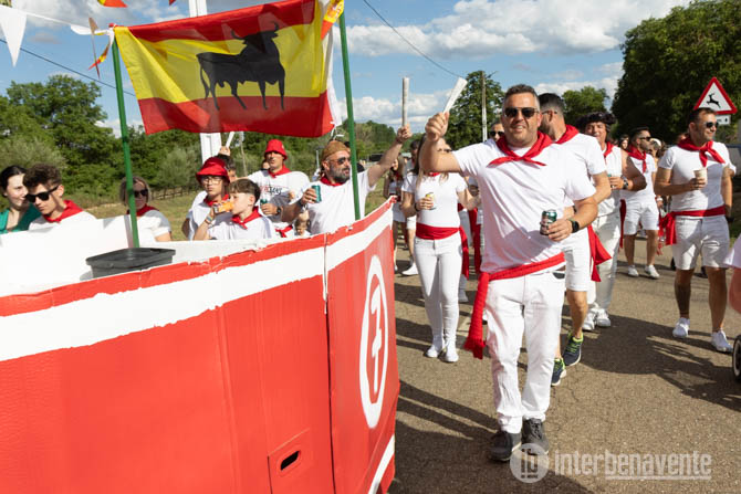 Abría el desfile un nutrido grupo de peñistas ataviados al más puro estilo San Fermín, que hasta cantaron a su santo, San Juanín, antes de sacar un gran toro hinchable con el que se divirtieron durante todo el recorrido del desfile, acompañados por la música de la Charanga Pasodoble.