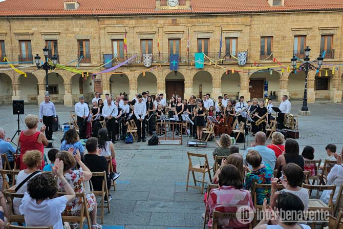 La Plaza Mayor de Benavente ha vuelto a acoger a la Banda de Música Maestro Lupi, en esta ocasión en el segundo concierto de verano que se realiza en la ciudad y que se ha planteado como una carta de presentación de las obras con las que van a participar en el XVII Certamen Gallego de Bandas de Música Populares que se celebra del 19 y 20 de octubre.