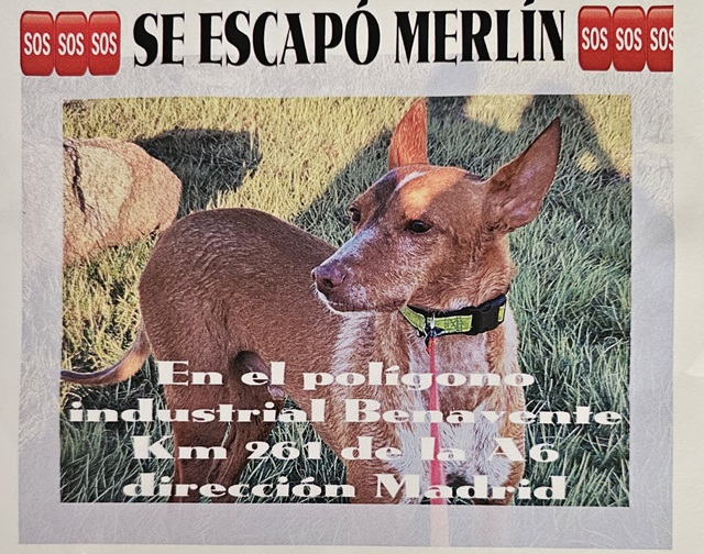 Merlín es un perro podenco que se busca des del 21 de julio cuando se escapó estando en la zona del Centro de Transportes.