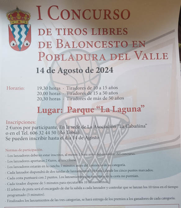 La inscripción puede hacersse en la sede de la Asociación 'La Cabañina' o en el número de teléfono 606 32 44 50 (Ro Tobía) hasta el 14 de agosto. La cuota de inscripción es de 2 euros que se pagarán al inscribirse.
