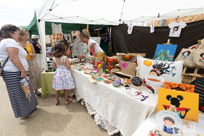 Cerca de una treintena de expositores respondieron a esta convocatoria de la Asociación El Atardecer, para el primer mercado de artesanía que se celebra en la localidad y que ha formado parte de su programación festiva