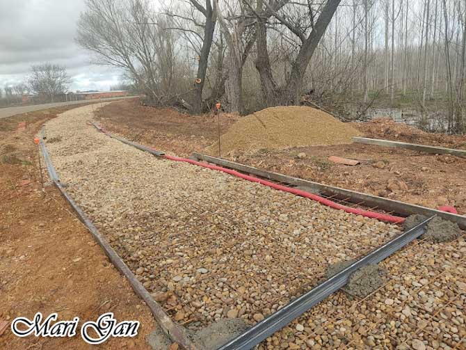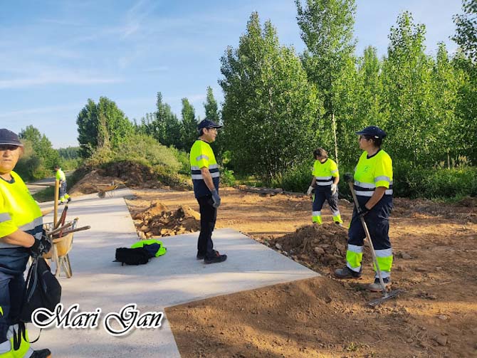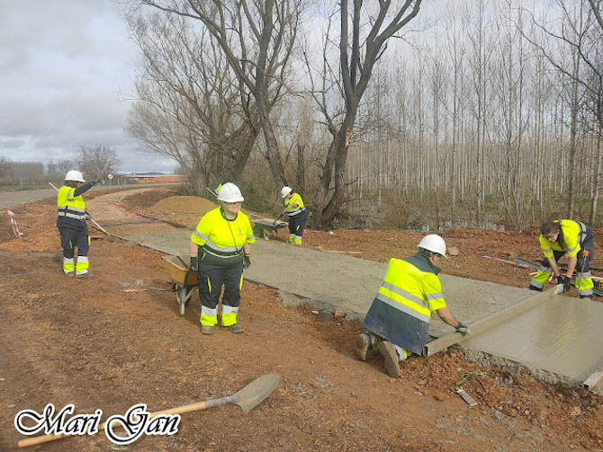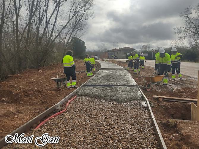 Entre sus trabajos realizados en Vecilla, destaca una acera de entrada al pueblo, de 765 metros de longitud, que han hecho desde cero, desde quitar la maleza que existía previamente, hasta completar todo el trazado y dejarla lista para su uso como paseo, que invita a ser recorrido disfrutando de las vistas.