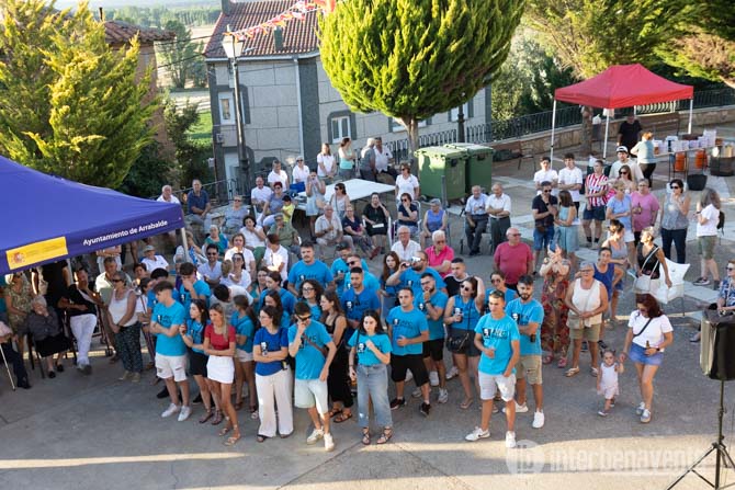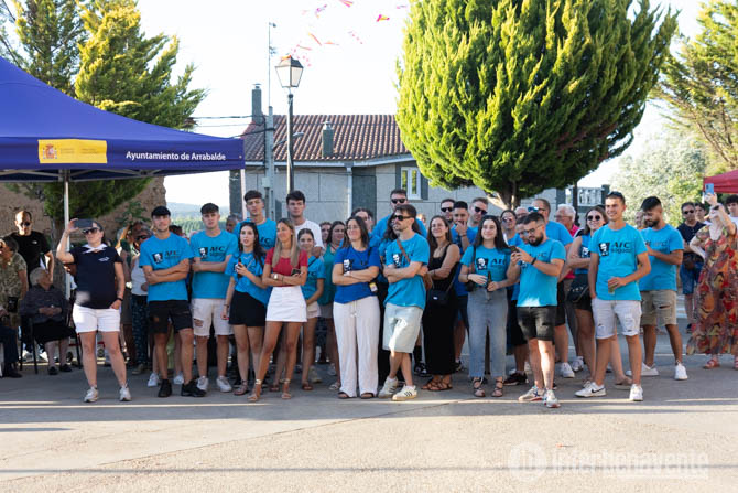 Durante su intervención, el periodista dedicó unas emotivas palabras a las dos peñas de Arrabalde, Peña La Pipa y AFC, así como a la Asociación Castro de las Labradas, resaltando su importancia en la vida del pueblo. Pero también quiso exhibir su gratitud por participar en el homenaje a tres vecinos centenarios: Esther Baladrón García, de 101 años, Sergio Ríos Macías, de 103 años, y Lucía Pérez García, de 102 años. "Ellas son el ejemplo de mujeres luchadoras que sacaron adelante a sus familias en tiempos difíciles, y Sergio, un carpintero ejemplar, representa el valor de los oficios tradicionales", subrayó Pérez de Andrés.