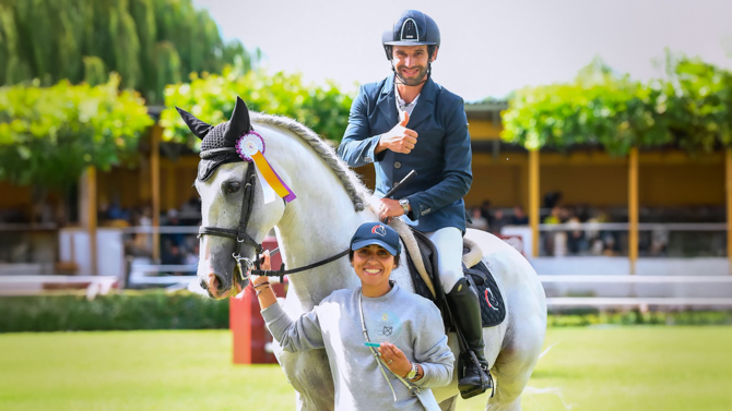 Este fin de semana, la ciudad asturiana de Gijón ha sido testigo de una actuación brillante en el Concurso Nacional de Saltos 2* (CNS 2*). El protagonista: VILORTO DAMASCO, un majestuoso Pura Raza Español montado por el jinete zamorano César Mañanes, natural de San Cristóbal de Entreviñas. El binomio se alzó con la victoria en la prueba grande de 1,30 metros, superando a 49 competidores y marcando un crono impresionante de 55,43 segundos.