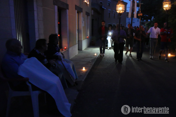Sin luz artificial, en la noche de verano del sábado 24 de agosto, hacia las 21.30 horas y acompañado por música y por las oraciones de los que acompañaban, fue llevado el Cristo en su procesión por el pueblo. En una noche, en la que el viento no permitió que todas las alrededor de 2.300 velas preparadas para darle un encanto especial al evento permaneciesen encendidas, pues muchas de ellas no resistieron el vendaval, a pesar de la insistencia de los vecinos por encenderlas una y otra vez con la esperanza de que finalmente todo saliera como estaba previsto.