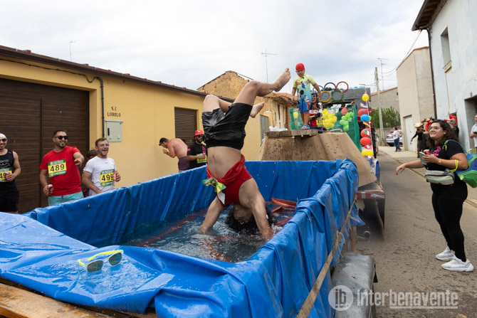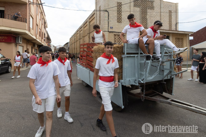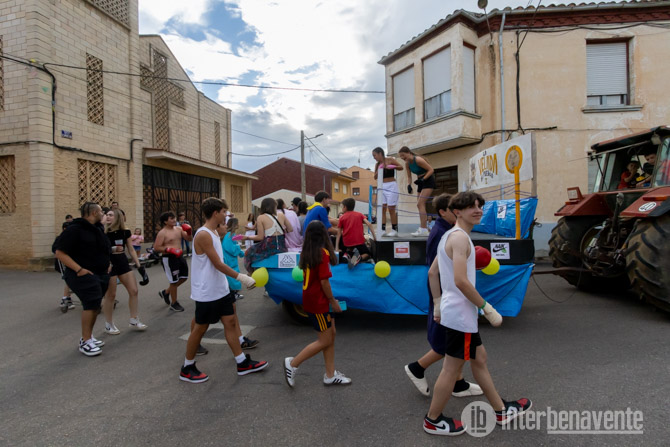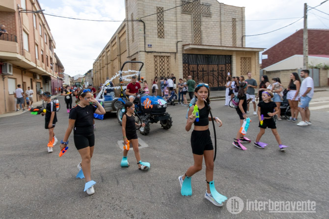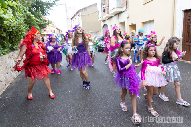 Abría la comitiva festiva del desfile el grupo de Gigantes y Cabezudos de Camarzana de Tera con sus músicos, seguidos de una quincena de grupos disfrazados, varios de ellos en carrozas habilitadas en remolques y cerraban el desfile las peñas de Santibáñez de Vidriales.