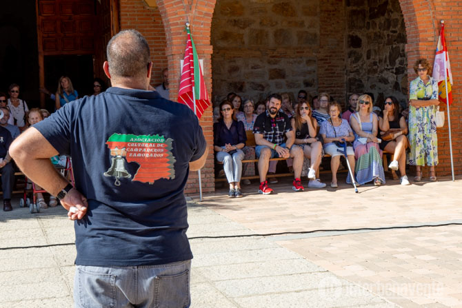 Antonio Ballesteros, presidente de la Asociación de Campaneros Zamoranos se encargó de presentar la exhibición de toques de campana, realizada desde el campanario de la iglesia, ofreciendo una selección de toques y explicando el significado de cada uno de ellos, además de la letra y la música que utilizan para aprenderlos. Los campaneros destacaron la gran profesionalidad de José Antonio Guerra, un maestro campanero del que habían aprendido mucho y al que aseguraron echaban mucho de menos.