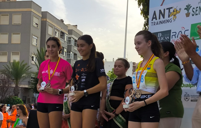 1ª María Domínguez. 36:54, 2ª Daniela Robles. 40:46 y 3ª Laura Maniega Martínez. Benavente atletismo. 41:35.