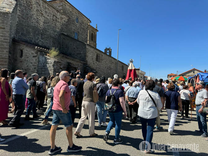 La solemne misa, presidida por el obispo de la diócesis de Astorga, Jesús Fernández, dio paso a la procesión alrededor de la iglesia, entre los múltiples tenderetes que, año tras año, deslucen el acto sin que a nadie parezca importarle. La procesión, encabezada una vez más por autoridades locales, provinciales y autonómicas, avanzó con paso lento al ritmo de gaiteros y tamborileros, mientras la Virgen de la Carballeda desfilaba en el centro de la comitiva, sin temor a la lluvia, como había ocurrido en años anteriores.
