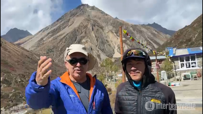 Rafa Miguelez, uno de los benaventanos que actualmente se encuentra haciendo una ruta de montaña en Nepal, acompañado de un amigo de este país, felicitan a la banda de música benaventana, que ayer consiguieron el primer premio en el Certamen de Bandas de Galicia