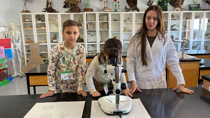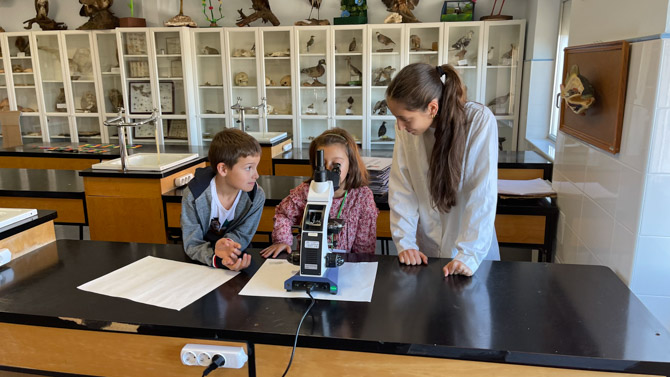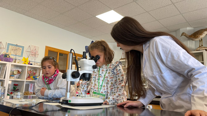 La actividad se enmarca dentro del proyecto MicroMundo Benavente, que tiene como objetivo acercar la biodiversidad microscópica de la localidad a estudiantes de todas las edades. Durante la visita, los niños exploraron el aula y el laboratorio de Ciencias del instituto, donde, bajo la atenta guía de Cristina y Sofía, pudieron observar muestras con microscopios y lupas binoculares, descubriendo organismos que viven en su entorno y que son invisibles a simple vista.