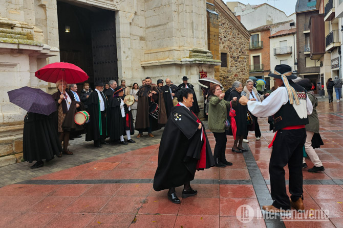 Al finalizar la misa, los asistentes iniciaron un pasacalles que recorrió brevemente las calles del centro de Benavente, aunque la lluvia obligó a finalizarlo antes de lo previsto. A pesar del cambio de planes, la música continuó en los soportales de la iglesia de Santa María, donde Pedraza ofreció una serie de interpretaciones que hicieron bailar a los asistentes.