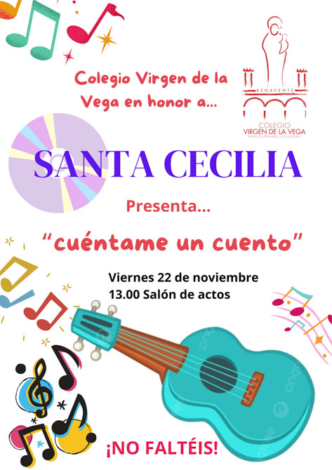 Hoy, el Colegio Virgen de la Vega de Benavente celebró unactividad en honor a Santa Cecilia, patrona de los músicos, bajo el título “Cuéntame un cuento”. Organizado por el departamento de música, el evento integró creatividad, música y narración, reuniendo a estudiantes de diferentes niveles educativos.