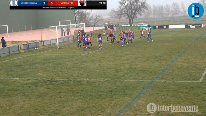 En la segunda parte, las jugadoras bovedanas salieron decididas a mostrar esa lucha y garra que tanto las distingue en este campeonato. Solo las acertadas intervenciones de Lucía, quien había sustituido en el descanso a Alba, evitaron que subiera el segundo gol al marcador. Este segundo tanto tuvo que llegar en una desafortunada jugada del equipo gallego, cuando, en el saque de un córner, su defensora Alba Garabal peinaba el balón hacia atrás, introduciéndolo en propia meta.