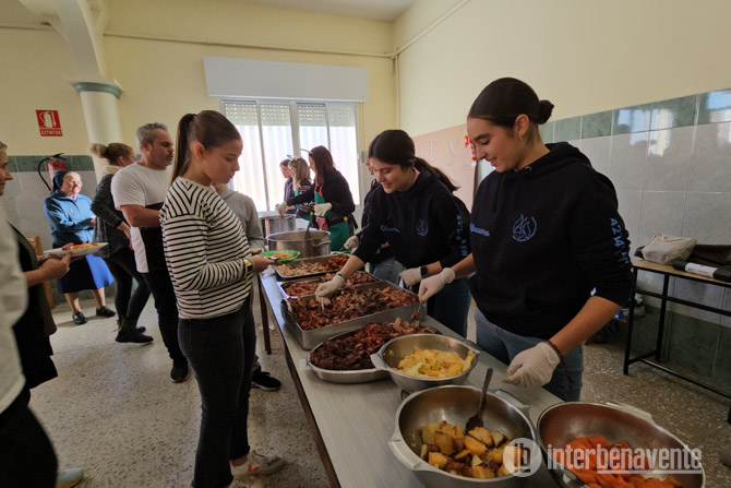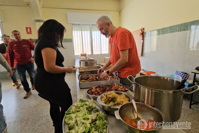 El menú consistió en un completo cocido elaborado con garbanzos Pico Pardal de Villarrín de Campos, acompañado de todos los ingredientes tradicionales: verduras, chorizo, papada, jamón, pollo y salsas. La sopa inicial marcó el comienzo del festín, y para el postre no faltaron bombas y café. Los asistentes disfrutaron tanto que muchos repitieron, pero aun así sobró comida gracias a la generosidad de las raciones.