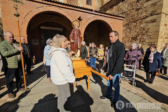 La celebración continuó con una pequeña procesión alrededor de la iglesia, una tradición recuperada recientemente, ya que comenzó a celebrarse el pasado año. Con gran solemnidad, los asistentes caminaron junto a sus mascotas, portando la imagen de San Antón.
