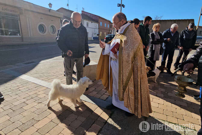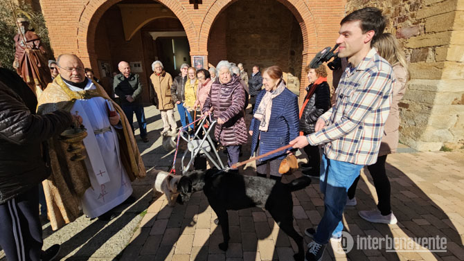 A la una de la tarde, en la puerta de la iglesia de Santa Cristina de la Polvorosa, el párroco Baltasar Villalón presidió el acto de la bendición. Tras la lectura de una oración especial dedicada a San Antonio Abad, conocido por su amor y protección hacia los animales, el sacerdote repartió agua bendita sobre una veintena de mascotas, principalmente perros, aunque también se contó con la presencia de algún conejo.