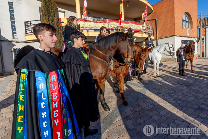 Este año, los protagonistas son Lucia, Vega, María, Iván, Raúl, Nayara, Edgar, Carla, Alexey y Carmen, quienes, a partir de las cuatro y media de la tarde, comenzaron a congregarse en la Plaza Mayor. Cuatro de ellos llegaron a lomos de caballos, el resto a pie y todos luciendo sus capas adornadas con cintas de vivos colores, con los nombres de sus compañeros.