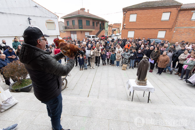 La tradicional subasta de San Antón volvió a llenar de animación la puerta de la iglesia de Olmillos de Valverde este domingo, siguiendo con una costumbre que reúne a vecinos y visitantes en torno a un singular evento que mantiene su esencia costumbrista
