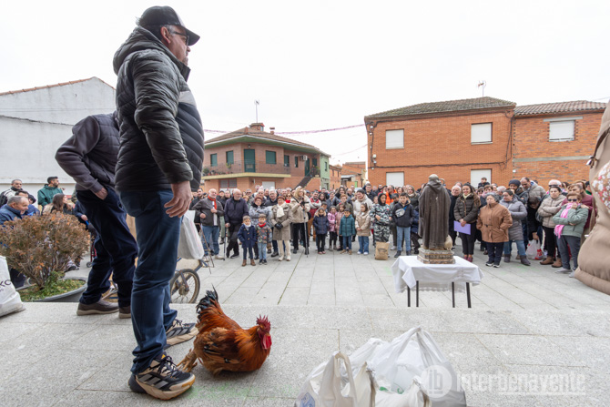 La subasta comenzó con el característico ambiente festivo que caracteriza este acto. Tras la misa, los vecinos se congregaron en torno a las escaleras de entrada a la iglesia, donde un miembro de la Cofradía de San Antón, con muy buen humor y entusiasmo, fue anunciando los productos que se ofrecían. Como es tradición, se sortearon lotes de productos de alimentación como legumbres, verduras y conservas, además de animales como gallos, gallinas, unos impresionantes barbos y dos conejos, que alcanzaron un precio de 100 euros. Tampoco faltaron los dulces caseros elaborados con esmero por los vecinos, muy cotizados por su calidad y sabor, que también fueron de los productos más pujados.