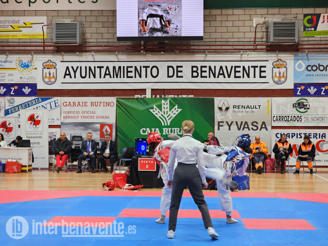 La pista del Pabellón de la Rosaleda se vestía con sus tatamis para acoger el Campeonato Regional de Taekwondo en las categorías junior y cadete. Una competición cuyo anfitrión ha sido el club Taekwondo de Benavente y donde se han dado cita 88 participantes que integran 13 clubes de Castilla y León.
