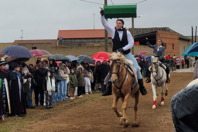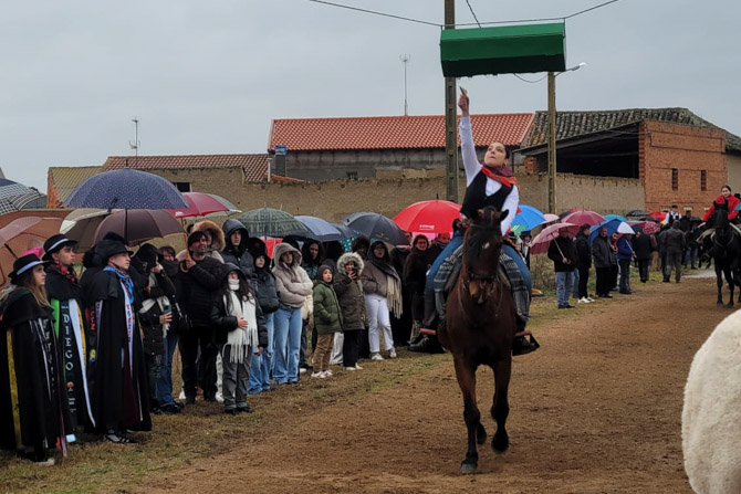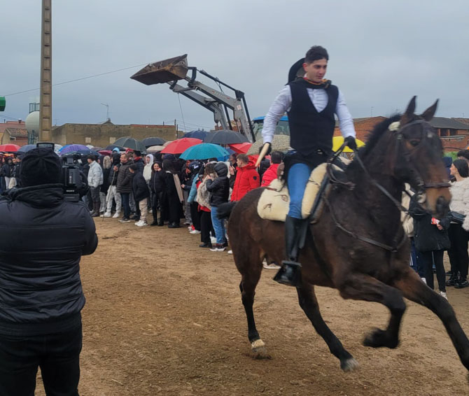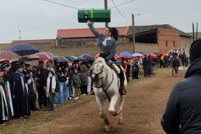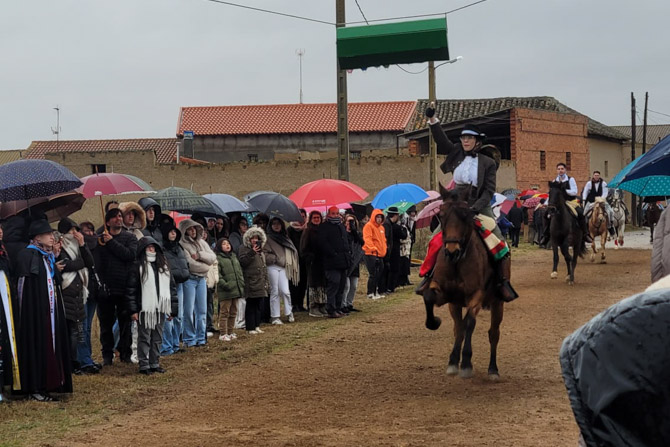 San Cristóbal de Entreviñas vivió este domingo una de sus tradiciones más esperadas: la carrera de cintas de los quintos, un evento que reunió a numerosos vecinos y visitantes a pesar de las inclemencias del tiempo
