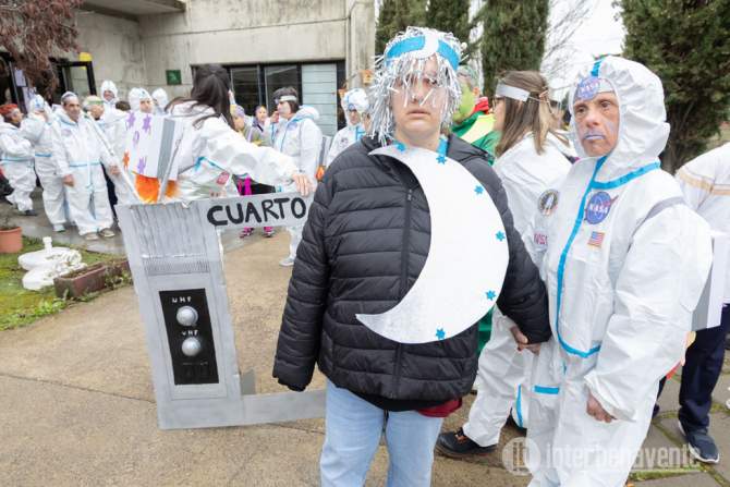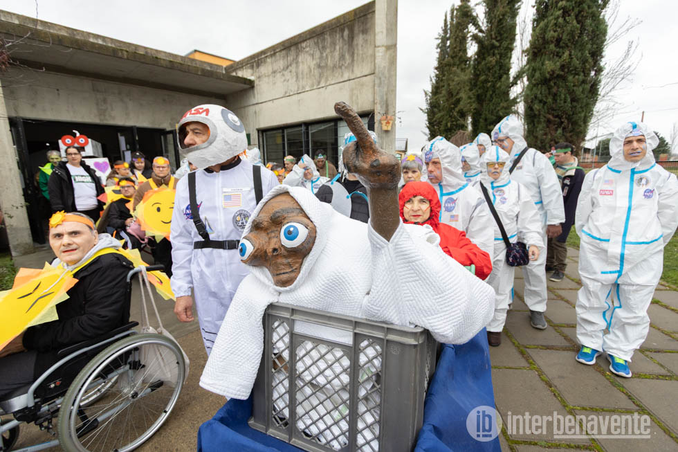 Más de un centenar de usuarios del centro, acompañados de sus monitores, han participado en esta colorida celebración, demostrando que el Carnaval es mucho más que una fiesta: es una oportunidad para la inclusión, la expresión y la alegría compartida. En este desfile han cobrado vida personajes icónicos como Jesús Calleja, con su inconfundible espíritu aventurero; Iker Jiménez, investigando los misterios del universo; E.T., con su entrañable silueta y su dedo señalando al cielo; y la perrita Laika, homenajeada con un tierno disfraz que recordaba su histórico viaje espacial. Además, astronautas con trajes plateados, planetas giratorios y constelaciones llenaban de color y fantasía el recorrido, todo ello bajo la atenta supervisión de una gran torre de control decorada con pantallas, luces y micrófonos desde la que uno de los usuarios animaba el evento con música y mucha pasión.