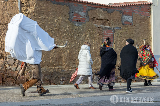 Sin embargo, este año, la ilusión por mantener viva la fiesta quedó patente con la participación de niños y jóvenes, algunos de los cuales portaron su propio toro, asegurando así la continuidad de la tradición. Como manda el rito, los mozos se reunieron en un corral para disfrazarse, mientras los vecinos, expectantes, coreaban: “¡Que salga el toro, con cuernos y todo!”. Al salir, comenzó la persecución de chicos y chicas por las calles del pueblo hasta las fincas cercanas, donde los personajes fueron realizando sus parodias, llegando de nuevo a la plaza del pueblo donde el toro embistió a la moza, desvocándose la música y la diversión.