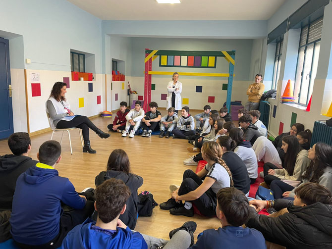 Asimismo, los alumnos de secundaria participaron en charlas informativas impartidas por Cabrera, mientras que los estudiantes de sexto de primaria presentaron un juego de mesa diseñado por ellos mismos y relacionado con la temática de la donación de sangre.