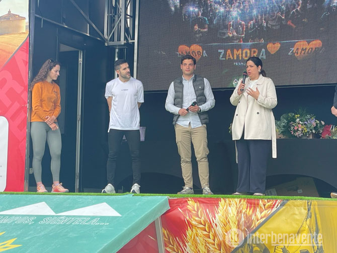 Beatriz Asensio, alcaldesa de Benavente, celebró que la prueba reina del sábado atraviese este año el casco urbano y la vía verde de la ciudad, señalando la implicación de la Concejalía de Deportes en la organización y el arraigo que el ciclismo tiene en la localidad.