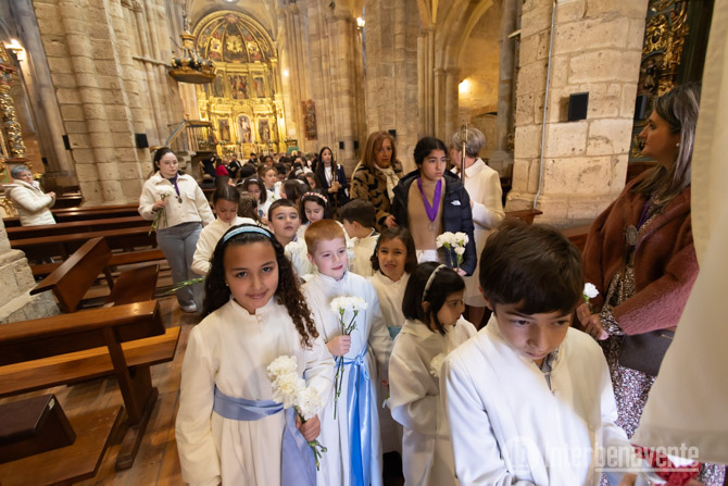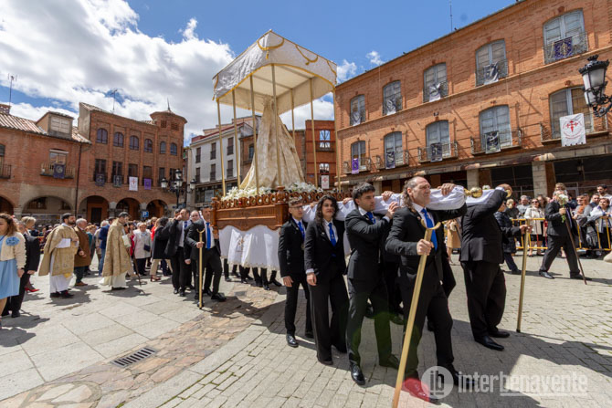 Tras la misa de Pascua, la imagen de la Virgen de las Angustias partía de la Iglesia de Santa María dirección a la Plaza Mayor, mientras que el paso del Cristo Resucitado esperaba a las puertas de la Iglesia de San Juan del Mercado para hacer su entrada en la Plaza Mayor de Benavente.
