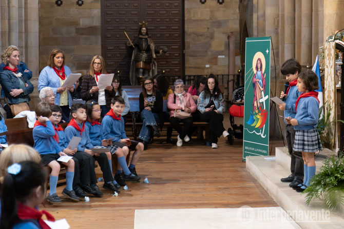 El alumnado de infantil del Colegio San Vicente de Paúl llegó esta mañana de viernes hasta la iglesia de Santa María la Mayor para realizar una ofrenda a la Virgen de la Vega