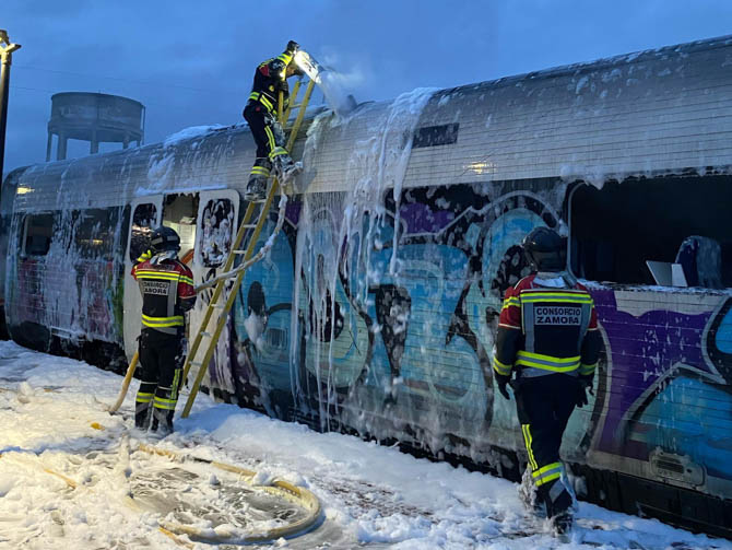El Centro de Emergencias 112 recibió la alerta a las 20:33 horas, y los bomberos trabajaron hasta las 22:20 horas para extinguir las llamas. El incendio se originó mientras el tren circulaba, y el maquinista, al detectar un fallo técnico cerca de Abejera, decidió conducir el convoy hasta la estación de Sarracín de Aliste para facilitar la evacuación y la intervención de los servicios de emergencia.
