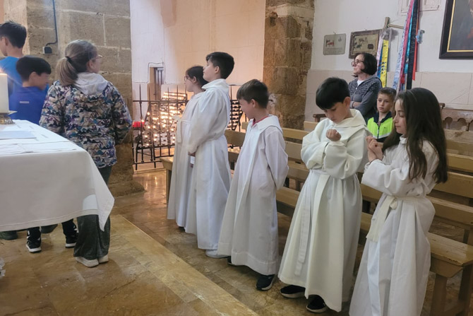 La romería salió a las 11:30 de la mañana y llegaron a Cimanes de la Vega donde rezaron y cantaron a la Virgen de la Vega. Seguidamente se dispusieron a reponer fuerzas con los bocadillos que cada uno llevaba, para continuar la tarde con juegos y trabajos por grupos de catequesis. El rezo del rosario y la participación en la Eucaristía fue el punto final a esta jornada, que tendrá su continuidad el próximo sábado 10 de mayo.