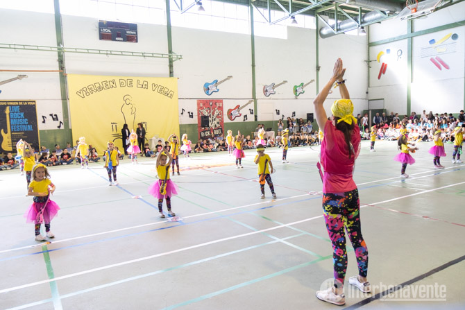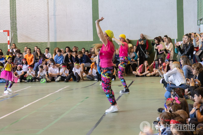 El pabellón acogió a las 18:00 una espectacular exhibición de baile, seguida de los esperados partidos de fútbol-sala: primero entre profesoras/madres contra alumnos (19:00) y luego entre profesores/padres frente a alumnos (20:00).