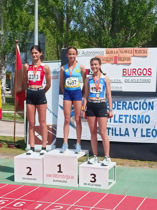 María Ganado Santiago se proclamó subcampeona de Castilla y León en la prueba de 1.000 metros lisos Sub12 femenina, logrando la medalla de plata con un tiempo de 3:20.79, marca personal incluida. Además, participó en salto de altura, donde fue octava con un mejor intento de 1.06 metros.