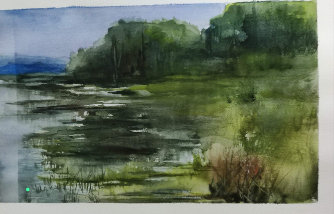 La luz y el color de nuestros valles se plasman con fuerza en sus acuarelas, aunque Fernanda también encuentra inspiración en otros paisajes cercanos a Madrid, ciudad en la que reside parte del tiempo, compaginando su vida con la de su pueblo natal.