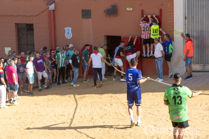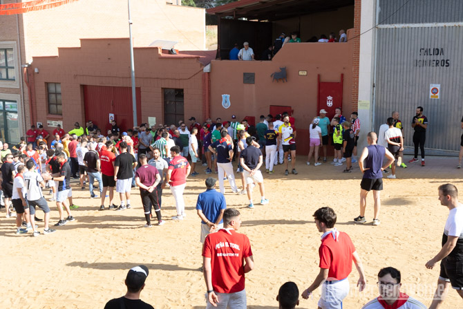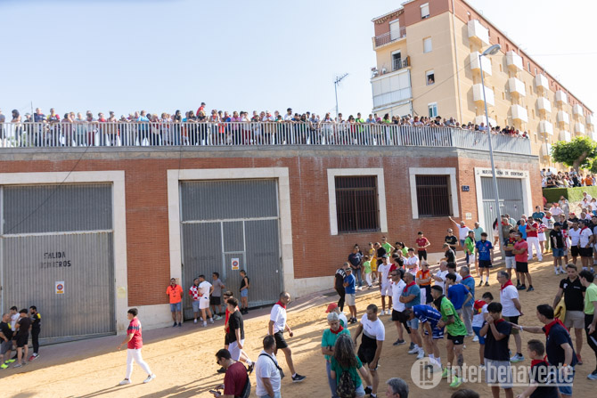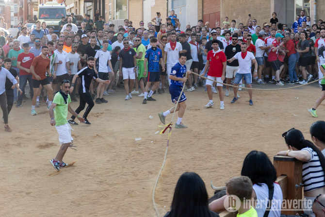 Las bombas que avisaban de la salida del torito sonaban cada 15 minutos, la primera a las 09:30 horas, la segunda a las 09:45 horas y la tercera se hacía esperar dos minutos, sonando a las 10:02 horas. Rompeola salía del toril, lo hacía con el Concejal Alberto Lorenzo, Presidente del Festejo a pie de calle.
