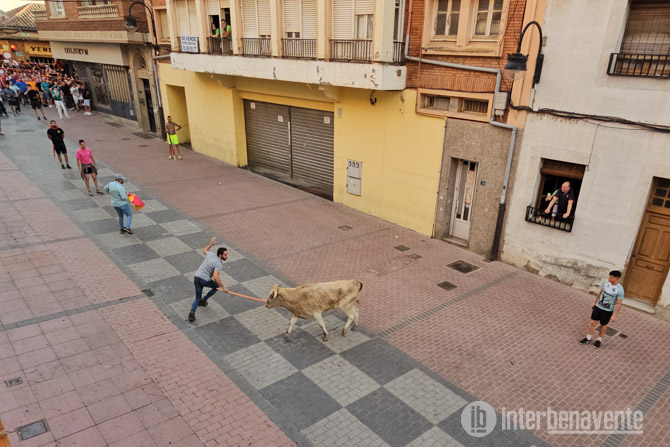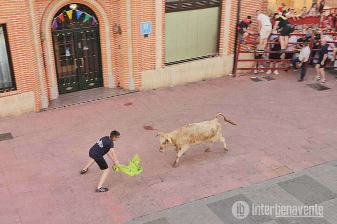 La Asociación No Te Metas organiza por primer año un festejo taurino en Benavente con una vaca de la Ganadería Antonio López Gibaja, que tuvo entretenidos a los corredores por el vallado urbano desde las 19:45 horas en el que únicamente hubo que lamentar el incidente con un corredor con una herida leve