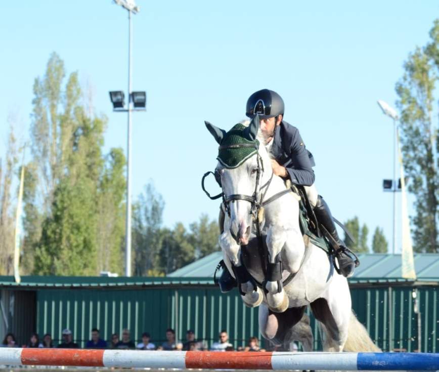 César Mañanes, jinete de San Cristóbal de Entreviñas (Zamora), ha logrado imponerse en la prueba de 1,20m con su caballo Pura Raza Español "VILORTO DAMASCO".