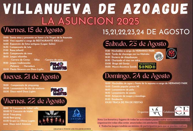 Programa de Fiestas - Villanueva de Azoague - La Asunción 2025