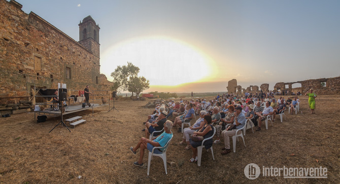 El músico zamorano Luis Antonio Pedraza, acompañado al piano por el maestro Maxi Delgado, fue presentado por el concejal de cultura, Ignacio Morán. Pedraza volvió a llenar este fin de semana el singular escenario de las ruinas del convento de Nuestra Señora del Valle, en San Román del Valle, en un concierto cargado de emoción, memoria y compromiso. La cita, organizada por la Asociación Cultural Virgen del Valle, congregó a un numeroso público que respondió con entusiasmo, participando activamente y disfrutando de la música de un intérprete que lleva por bandera la difusión del folclore zamorano dentro y fuera de nuestras fronteras.