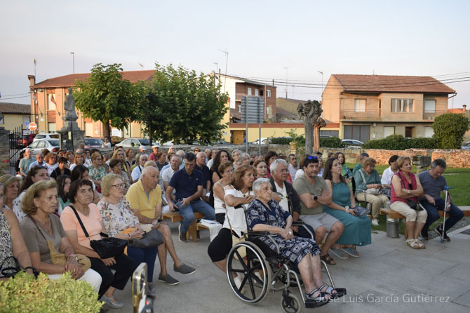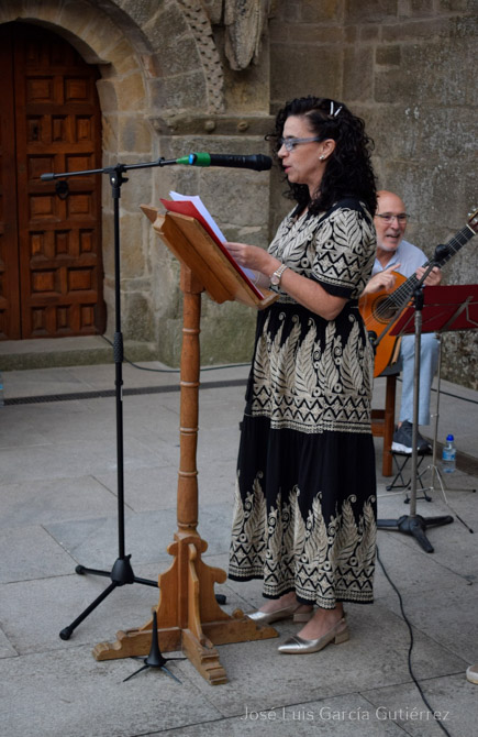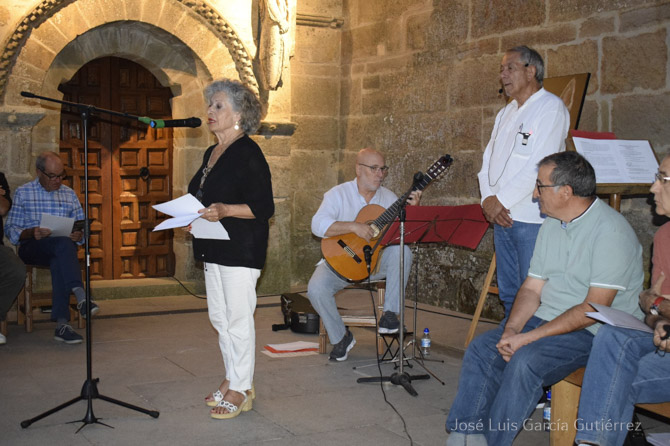 La poetisa zamorana Concha Pelayo leyó sus originales poemas de inspiración lorquiana donde, emulando al poeta granadino, logra unas composiciones muy reconocidas y apreciadas por el público que llenaba la puerta norte del Monasterio.