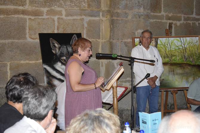 El acto tuvo como decorado los cuadros de la pintora Eva María Lobato, que contribuyeron a realzar el acto y, a la vez, a reivindicar el genio creativo de los artistas que residen en nuestra tierra zamorana.