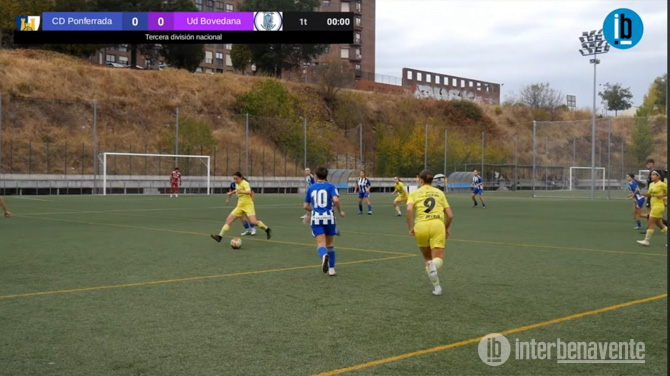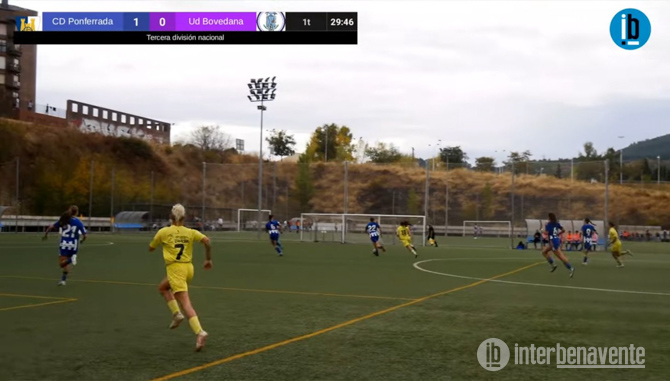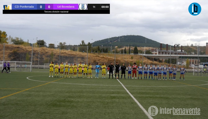 En la primera mitad, el CD Ponferrada mostró más intensidad y garra, imponiéndose en la mayoría de los duelos tanto defensivos como ofensivos, lo que hizo estéril el dominio de balón de la UD Bovedana. La más incisiva de las zamoranas fue Vicky, que creó peligro por la banda derecha.
