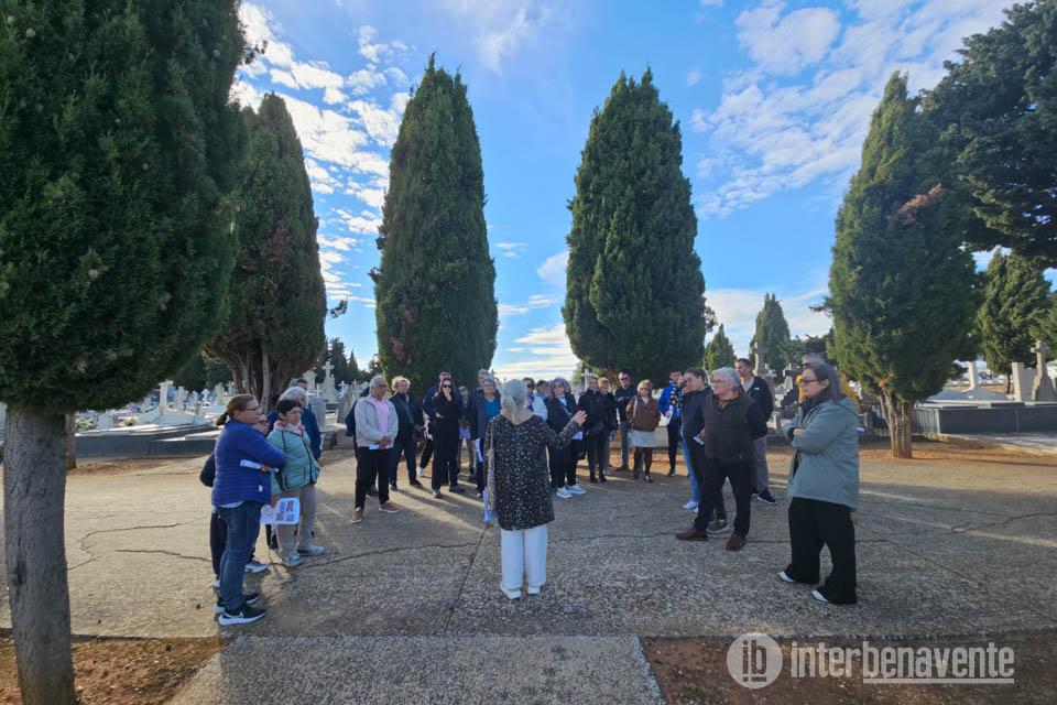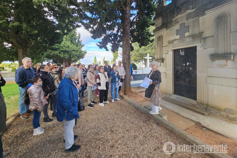 El cementerio de Benavente se convirtió esta tarde en un escenario de historia, memoria y patrimonio con la celebración de un paseo histórico organizado por la Concejalía de Turismo del Ayuntamiento de Benavente. La actividad, que pretende descubrir el Benavente insólito y desconocido, reunió a alrededor de una treintena de participantes interesados en descubrir la historia de la ciudad a través de sus personajes ilustres y su legado funerario