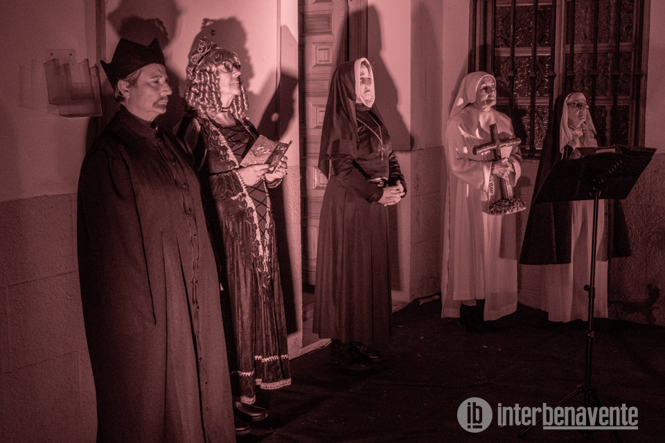El recorrido comenzó en el Hospital de la Piedad, donde un misterioso monje dio inicio a la representación narrando historias fantásticas vinculadas a la historia y los monumentos de Benavente. En un ambiente oscuro y tenebroso, los actores interpretaron sus papeles ante grupos de unas 40 personas, en las dos sesiones programadas: una a las 20:00 horas y otra a las 22:30.