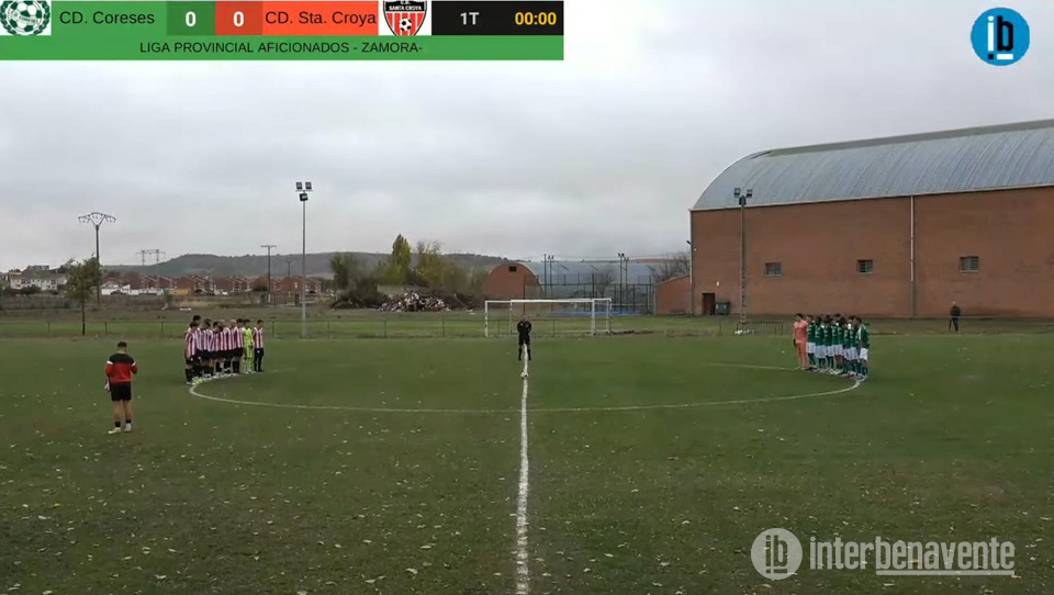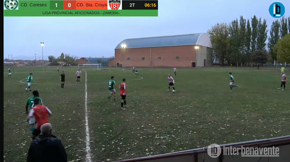 Tras el gol, el C.D. Coreses se adueñó del balón y presionó alto, dificultando la salida del Santa Croya C.F.. Los visitantes, por su parte, encontraban problemas para combinar cerca del área debido al mal estado del terreno de juego, con varios charcos que impedían circular el balón. Con el 1-0 se llegó al descanso.