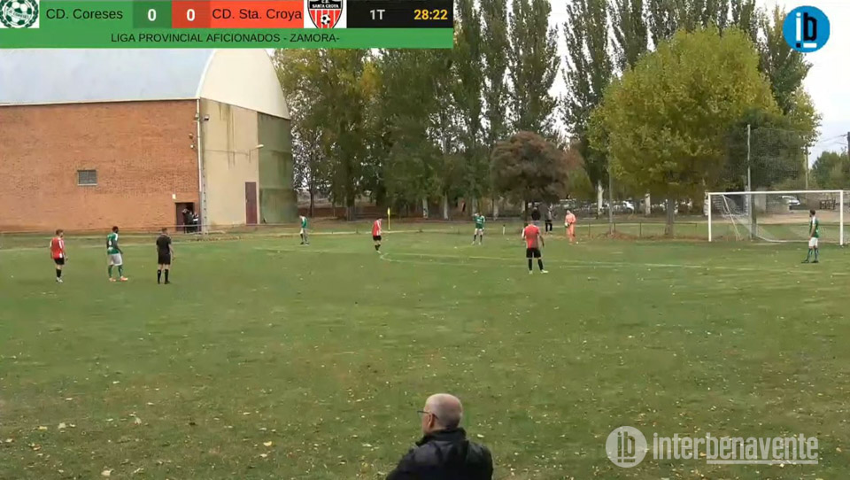 El Santa Croya C.F. respondió con una llegada de Berodas, que desde el centro del área disparó flojo a las manos del guardameta Dani. En defensa, Iker, Chuso y Juanma se mostraban seguros, conteniendo a los delanteros rivales. Pero en el minuto 28, una pérdida en el centro del campo provocó la contra letal del C.D. Coreses: Britez asistió a Jhony, que ganó la espalda a Jorge y batió a Mario para poner el 1-0.