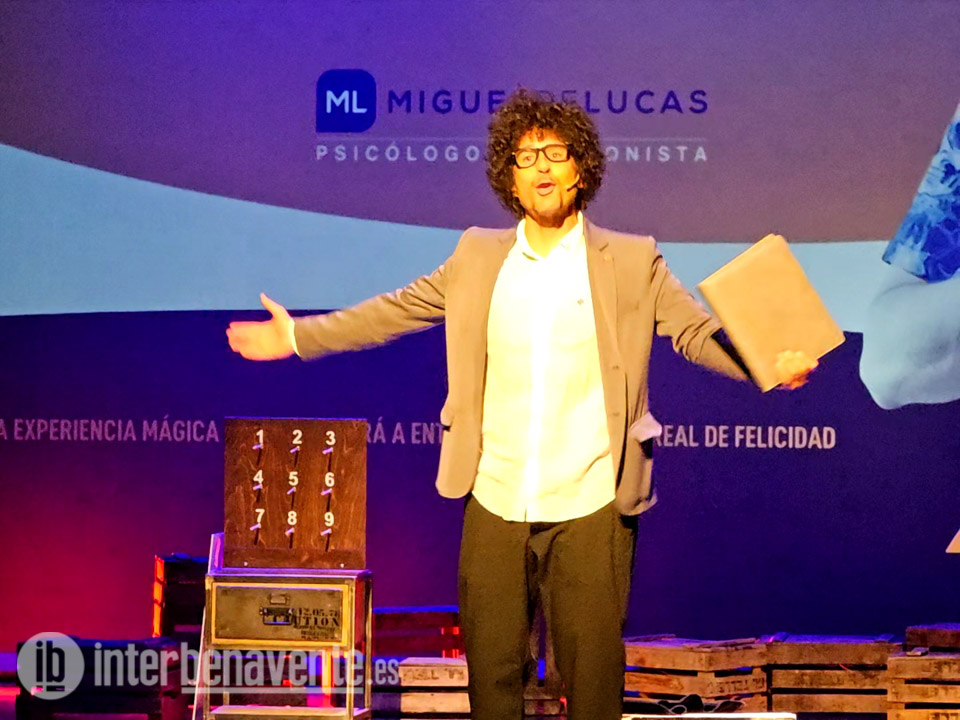 Miguel de Lucas a través de varios ejercicios mágicos hacía partícipe al público benaventano, tanto adulto como infantil, estos últimos con mayor facilidad para participar en el espectáculo creando una sintonía entre el ilusionista y el patio de butacas, con su especial característica de humor cercano y cariñoso hacia los asistentes benaventanos que siempre le acogen con esa especial conexión que consigue en cada espectáculo.